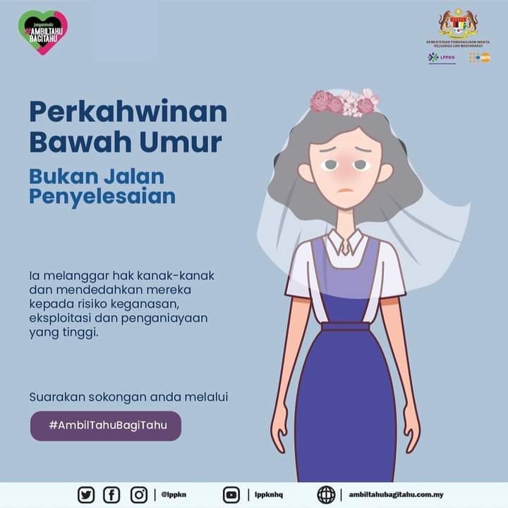 Perkahwinan bawah umur di Malaysia merupakan suatu isu yang tiada berkesudahan. Pada umur muda sebegini, kanak-kanak dan remaja seharusnya diberi peluang untuk mengasah potensi dan membentuk masa depan mereka yang cemerlang.